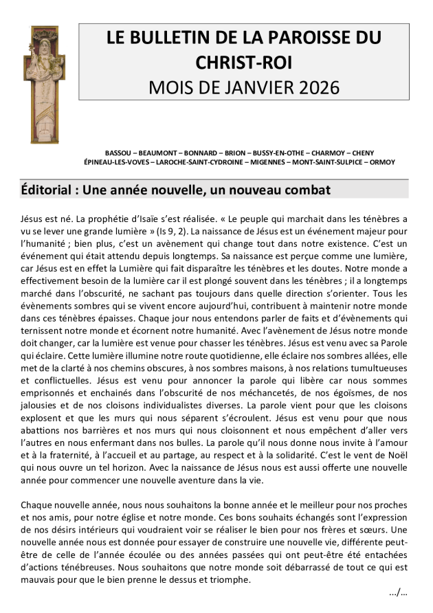 Fraternité du Christ-Roi Lun. 26 Jan. 14h30