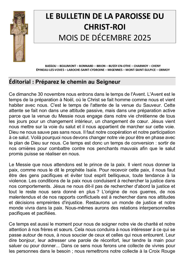 Fraternité du Christ-Roi Lun. 22 Déc. 14h30